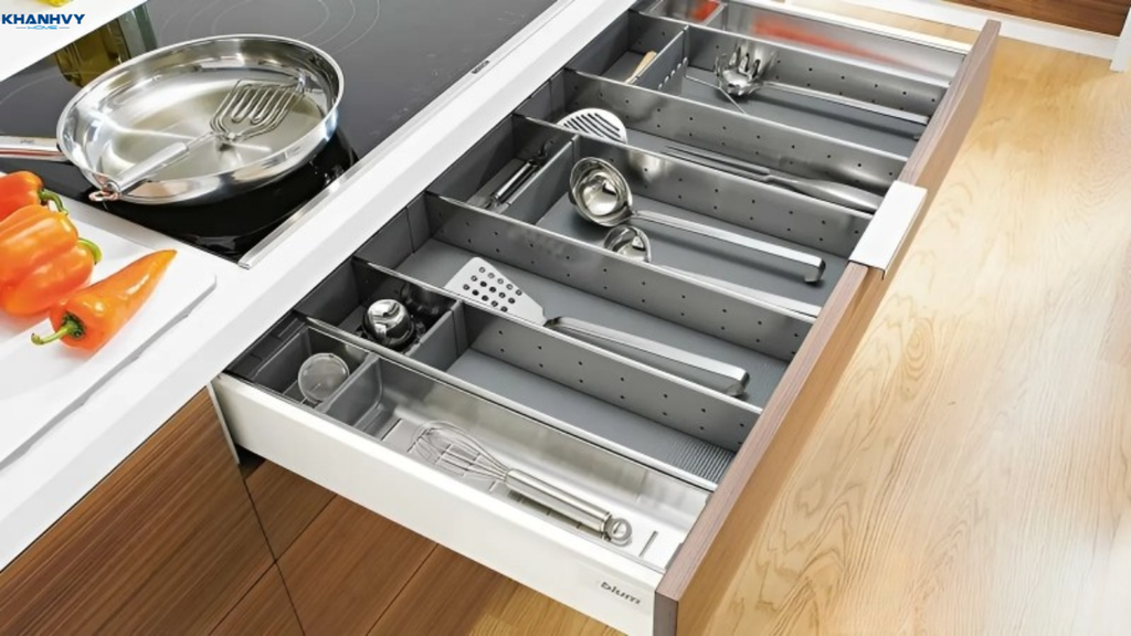Sử dụng khay chia ngăn kéo để phân loại dụng cụ ăn uống