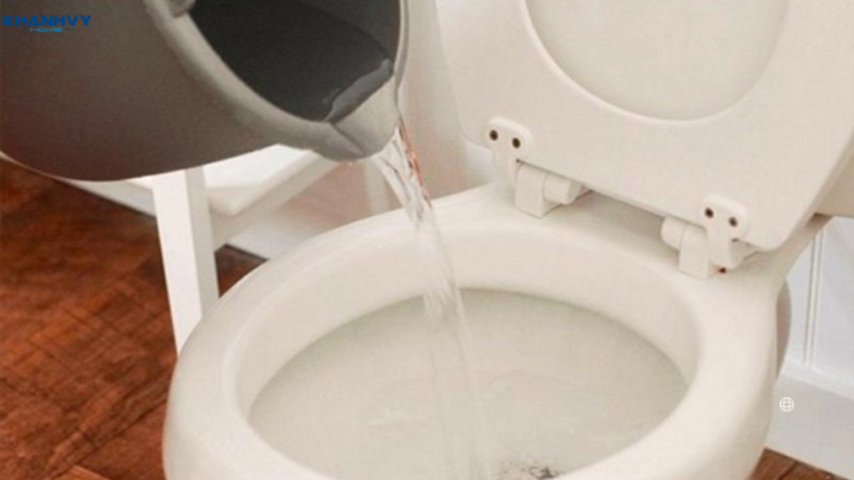 Tẩy bồn cầu bị ố vàng lâu ngày bằng nước sôi