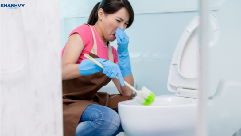 Khi bồn cầu thoát nước chậm hoặc bị tắc nghẽn, nước và chất thải sẽ đọng lại lâu hơn. Điều này không chỉ gây mùi hôi mà còn đẩy nhanh quá trình hình thành vết ố do sự lắng đọng của cặn bẩn.