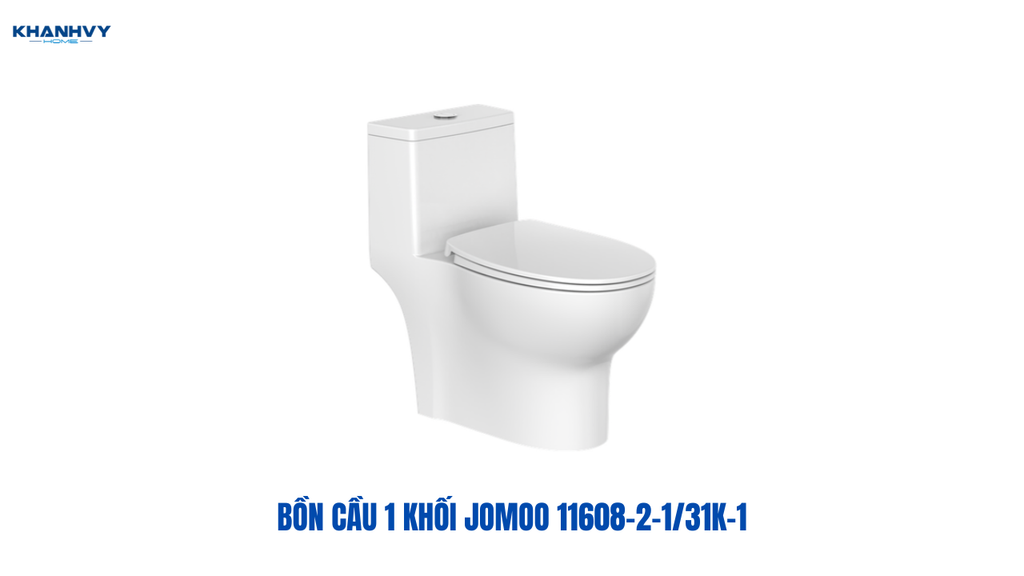 - Bồn cầu 1 khối Jomoo 11608-2-1/31K-1 có thiết kế liền khối hiện đại, sang trọng, dễ vệ sinh. Men đất hiếm kháng khuẩn 99.9%, chống bám bẩn, ố vàng. Hệ thống xả Siphon kết hợp xả xoáy mạnh mẽ, sạch sâu, tiết kiệm nước (6L/4.2L). Nắp PP đóng êm, bền chắc, kháng khuẩn. Ống xả tráng men toàn phần, chống tắc, ngăn mùi hiệu quả.