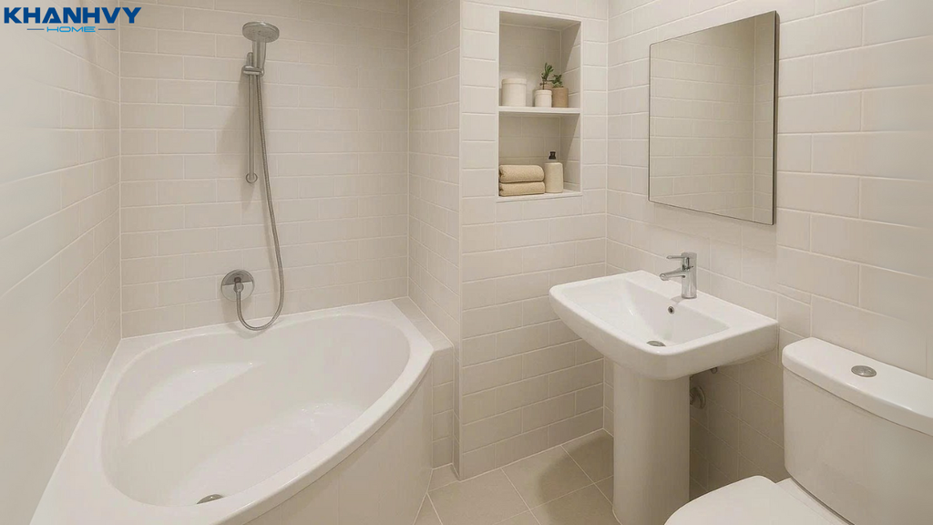 Bồn tắm góc: Như đã đề cập, đây là giải pháp "vàng" cho phòng tắm nhỏ, giúp khai thác hiệu quả khu vực góc tường thường bị bỏ trống.