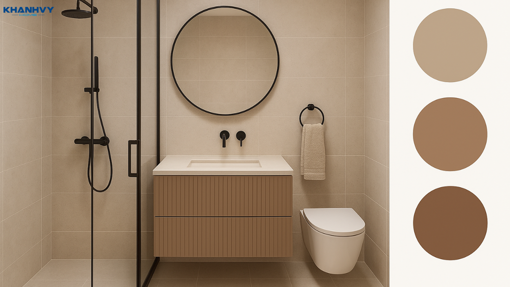 Cách phối này giúp phòng tắm trở nên tinh tế, thanh lịch và dễ áp dụng cho mọi diện tích, đặc biệt phù hợp với những ai yêu thích phong cách tối giản. Ưu điểm lớn nhất của phối màu đơn sắc là ít khi bị lỗi thời và luôn mang đến cảm giác đồng nhất, gọn gàng.