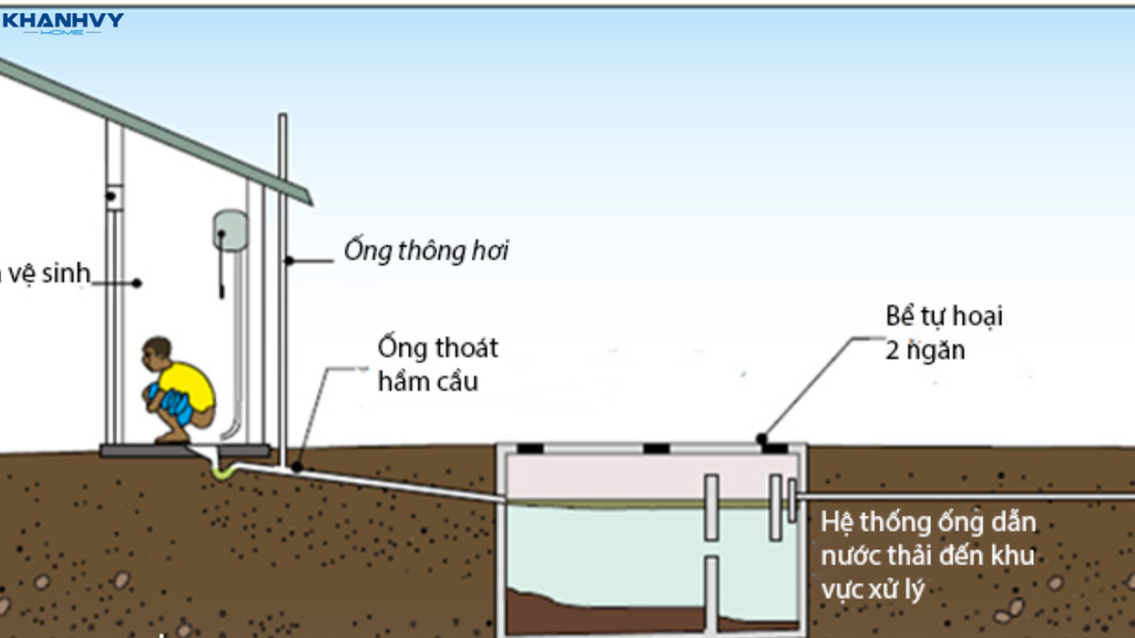 - Hệ thống thoát chất thải: Ống dẫn chất thải được thiết kế dốc, kết nối với cống để đảm bảo xả sạch.