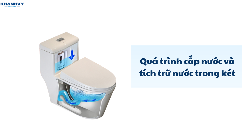 Chu trình lặp lại: Sau khi quá trình xả và hút kết thúc, van xả ở đáy két sẽ tự động đóng lại (do trọng lực hoặc phao nổi nhỏ). Lúc này, phao nước trong két sẽ hạ xuống, kích hoạt van cấp nước và chu trình làm đầy két nước lại bắt đầu, chuẩn bị cho lần sử dụng tiếp theo.