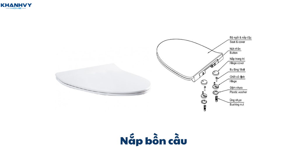 - Nắp bồn cầu: Được làm bằng nhựa hoặc vật liệu cao cấp, có tác dụng che đậy và giữ vệ sinh.