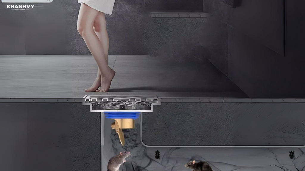 Một điểm cộng lớn của phễu thoát sàn hiện đại là được tích hợp cơ chế chống mùi thông minh. Các công nghệ phổ biến gồm phao chặn nước, gioăng cao su hoặc nắp lật tự động, hoạt động như một cửa van một chiều: nước đi xuống dễ dàng nhưng mùi hôi từ cống không thể bốc ngược lên.