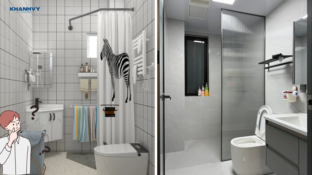 Tuy nhiên, với những phòng tắm quá nhỏ hoặc ngân sách hạn chế, bạn có thể cân nhắc những giải pháp thay thế như rèm tắm, vách ngăn nhựa hoặc tường nhẹ chống thấm. Những lựa chọn này tuy không mang lại cảm giác sang trọng như kính cường lực, nhưng vẫn đảm bảo được chức năng phân tách không gian và chống nước bắn ra ngoài, đồng thời tiết kiệm chi phí và dễ dàng thay thế khi cần.
