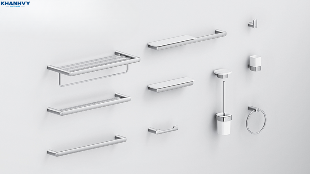 Để hoàn thiện không gian, Inax cung cấp đầy đủ các phụ kiện phòng tắm đồng bộ như kệ kính, móc treo khăn, vòng treo khăn, hộp đựng giấy... Tất cả đều được chế tác từ vật liệu cao cấp, chống gỉ sét và có thiết kế hài hòa với các sản phẩm chính.