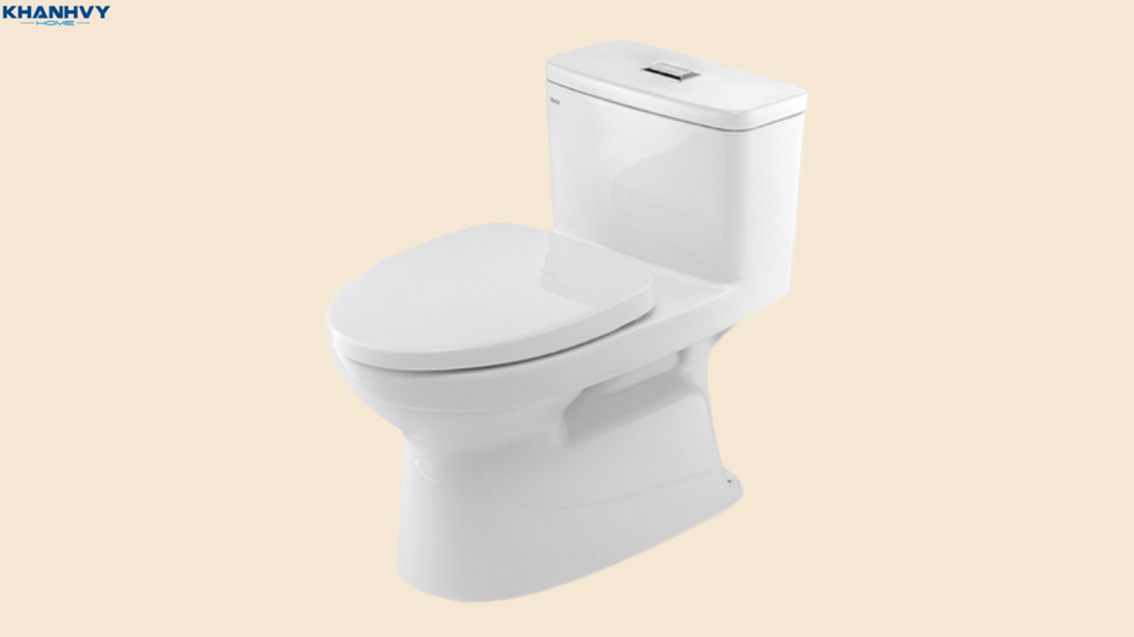 Bồn cầu 1 khối Inax: Thiết kế liền khối sang trọng, không có khe hở giữa két nước và thân cầu, giúp việc vệ sinh dễ dàng hơn và chống bám bẩn tốt hơn.
