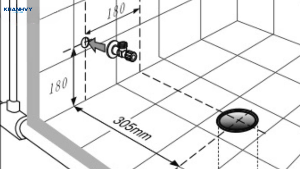 - Đo từ tường chưa ốp gạch đến tâm lỗ thoát sàn để đảm bảo độ chính xác.