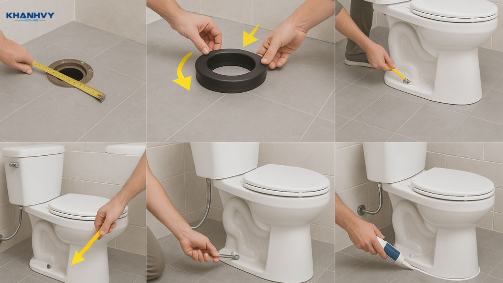 Dưới đây là các bước cơ bản trong quy trình lắp đặt bồn cầu chuẩn kỹ thuật: