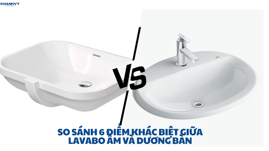 Trong thiết kế phòng tắm, lavabo âm bàn và lavabo dương bàn là hai loại phổ biến nhất hiện nay. Mỗi loại chậu rửa đều có những ưu và nhược điểm riêng về thiết kế, tính năng và chi phí. Khánh Vy Home sẽ giúp bạn hiểu rõ 6 điểm khác biệt quan trọng nhất giữa lavabo âm bàn và dương bàn, từ đó đưa ra lựa chọn phù hợp nhất với không gian và phong cách nội thất của bạn.