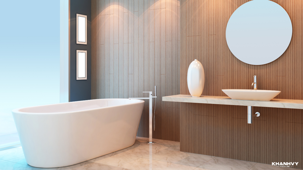 Thiết kế phòng tắm hiện đại, bồn tắm bo tròn mềm mại, tinh tế và tiện nghi