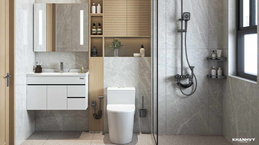 Đối với những gia chủ muốn nâng tầm trải nghiệm, các thiết bị hiện đại như bồn cầu thông minh là lựa chọn không thể bỏ qua. Chúng được tích hợp nhiều tính năng như rửa tự động, sưởi ấm bệ ngồi, khử mùi, tiết kiệm nước… mang lại sự tiện lợi tối đa. Tương tự, sen tắm nhiệt độ ổn định giúp duy trì dòng nước ấm đều, tránh tình trạng thay đổi nhiệt độ đột ngột, rất phù hợp cho gia đình có trẻ nhỏ hoặc người lớn tuổi.