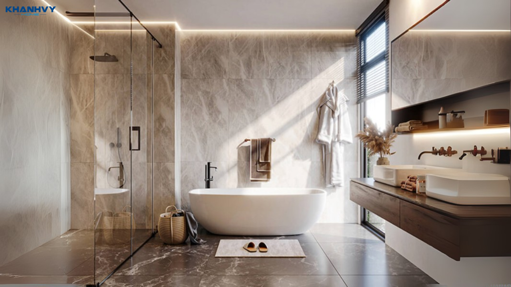 Thiết kế phòng tắm phong cách hiện đại ốp đá marble kết hợp nội thất cao cấp