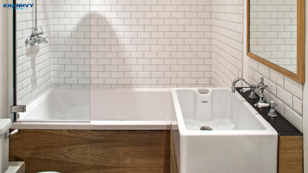 Phòng tắm nhỏ đẹp với bồn tắm và lavabo đặt cạnh tối ưu diện tích