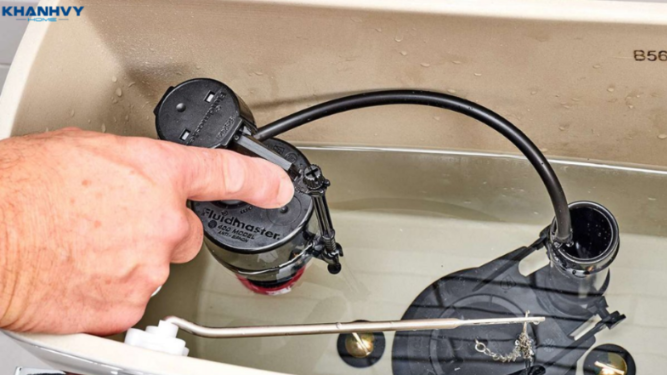 Kiểm tra và điều chỉnh phao nước đúng mức, không nên quá cao (dễ gây tràn qua ống tràn hoặc rò rỉ nắp két) cũng không nên quá thấp (không đủ nước xả).