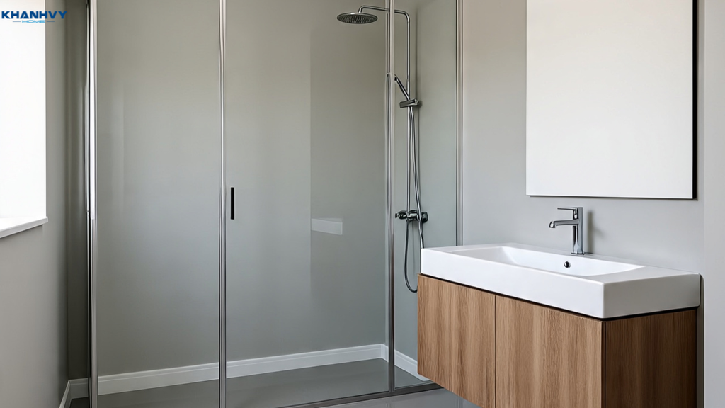 Khung nhôm hoặc inox chống rỉ: Đảm bảo độ bền của vách kính trong môi trường ẩm ướt.