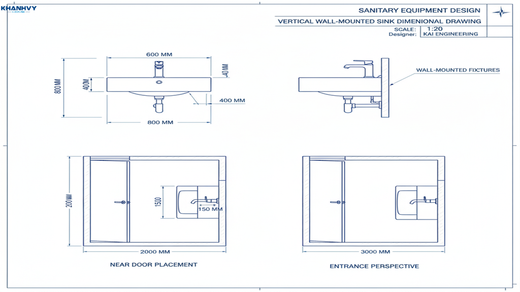 Vị trí đặt lavabo theo chiều ngang đặt sát cửa ra vào hoặc ngay bên cạnh cửa