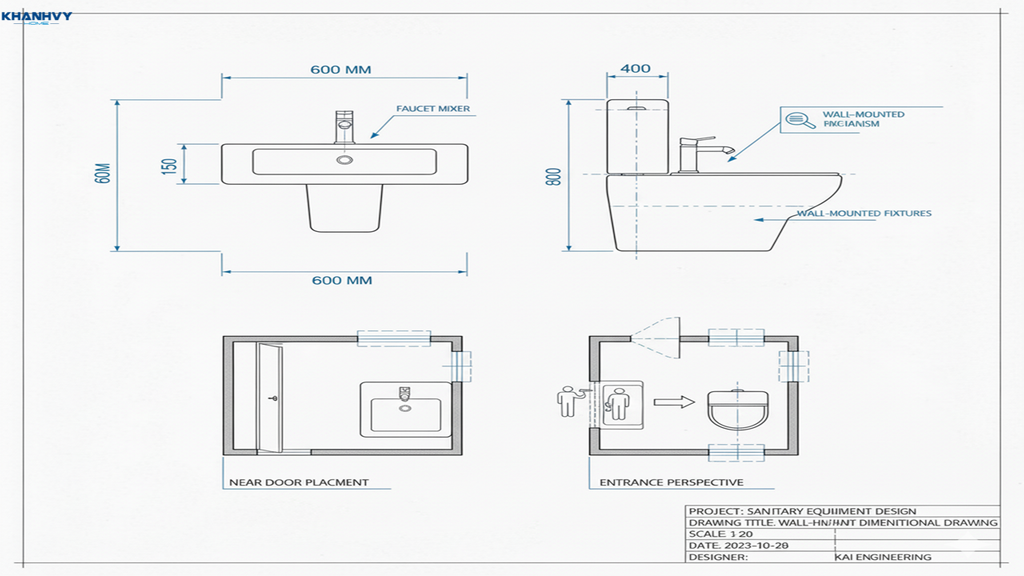 Lavabo thường được đặt sát cửa ra vào hoặc ngay bên cạnh cửa phòng, tạo điểm tiện cho việc rửa tay nhanh chóng sau khi ra vào phòng tắm.