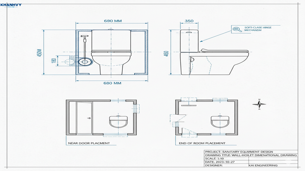 Vị trí đặt bồn cầu gần cửa phòng hoặc cuối phòng