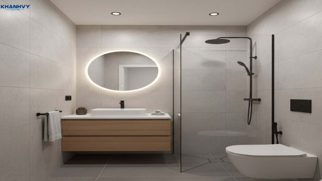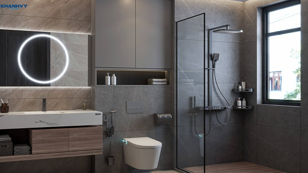 Năm 2025, xu hướng thiết kế phòng tắm 3m2 đang ngày càng hướng tới sự tối giản, hiện đại và tích hợp nhiều tiện ích thông minh đồng thời đề cao yếu tố thoáng đãng, thân thiện với thiên nhiên và môi trường. Với bộ sưu tập 9+ mẫu thiết kế phòng tắm 3m2 đẹp, đa dạng phong cách và bố tr bạn dễ dàng lựa chọn cho mình không gian phòng tắm hoàn hảo phù hợp nhất. Hãy để Khánh Vy Home đồng hành cùng bạn trong việc kiến tạo không gian sống tinh tế và tiện nghi với những thiết bị vệ sinh chất lượng cao công nghệ tiên tiến.