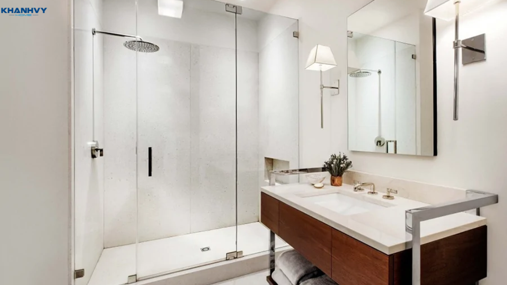 Vách kính giúp giữ nước trong khu vực tắm, giữ sàn khô ráo và an toàn chống trơn trượt.