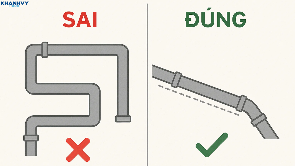 Đây là một nguyên nhân ít ai ngờ tới nhưng lại có tác động rất lớn và lâu dài. Một hệ thống đường ống thoát nước được lắp đặt không đúng tiêu chuẩn kỹ thuật sẽ luôn tiềm ẩn nguy cơ tắc nghẽn, dù bạn có giữ gìn vệ sinh cẩn thận đến đâu.