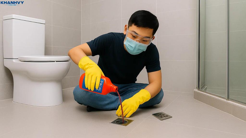 Sử dụng hóa chất thông cống chuyên dụng (lưu ý an toàn)