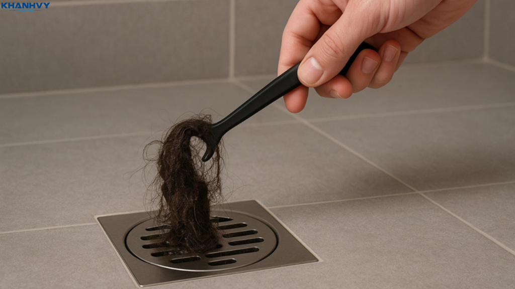 Móc câu tóc là dụng cụ đơn giản, hiệu quả để xử lý các khối tóc gây tắc nghẽn ở gần.