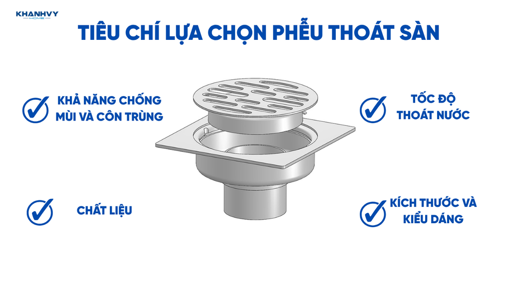 Khi lựa chọn phễu thoát sàn cho nhà tắm, nhà vệ sinh hoặc khu vực sinh hoạt, nhiều người thường chỉ quan tâm đến giá cả mà bỏ qua những yếu tố quan trọng khác. Thực tế, một chiếc phễu thoát sàn tốt không chỉ đảm bảo thoát nước nhanh mà còn giúp ngăn mùi hôi, chống côn trùng, tăng tính thẩm mỹ và độ bền cho không gian. Dưới đây là 4 tiêu chí quan trọng bạn cần cân nhắc khi chọn mua phễu thoát sàn: