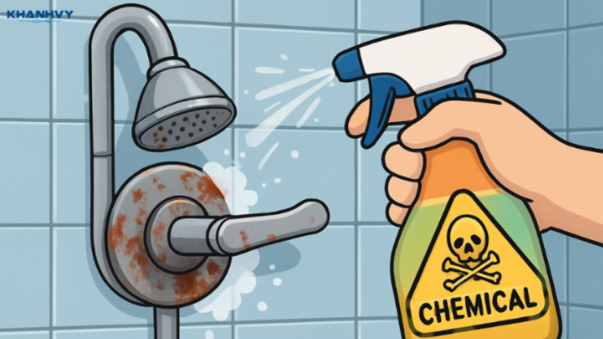 Việc sử dụng các chất tẩy mạnh, chứa axit hoặc clo để vệ sinh vòi sen có thể phá vỡ lớp mạ bảo vệ, khiến kim loại bên dưới bị gỉ sét nhanh chóng. Một số người dùng thường không để ý đến thành phần hóa chất trong sản phẩm vệ sinh, dẫn đến hậu quả ngoài ý muốn.