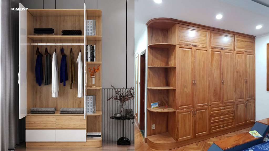 Phong cách cổ điển hoặc tân cổ điển: Nếu bạn thích phong cách cổ điển, ấm cúng có thể chọn tủ gỗ tự nhiên với những đường nét chạm khắc tinh xảo, gam màu trầm như nâu, cánh gián, hoặc kem sữa để tạo cảm giác sang trọng và ấm cúng.