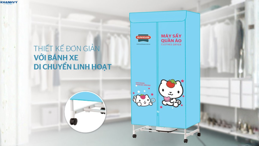 Tủ sấy quần áo có thiết kế đơn giản và dễ di chuyển