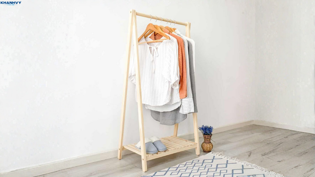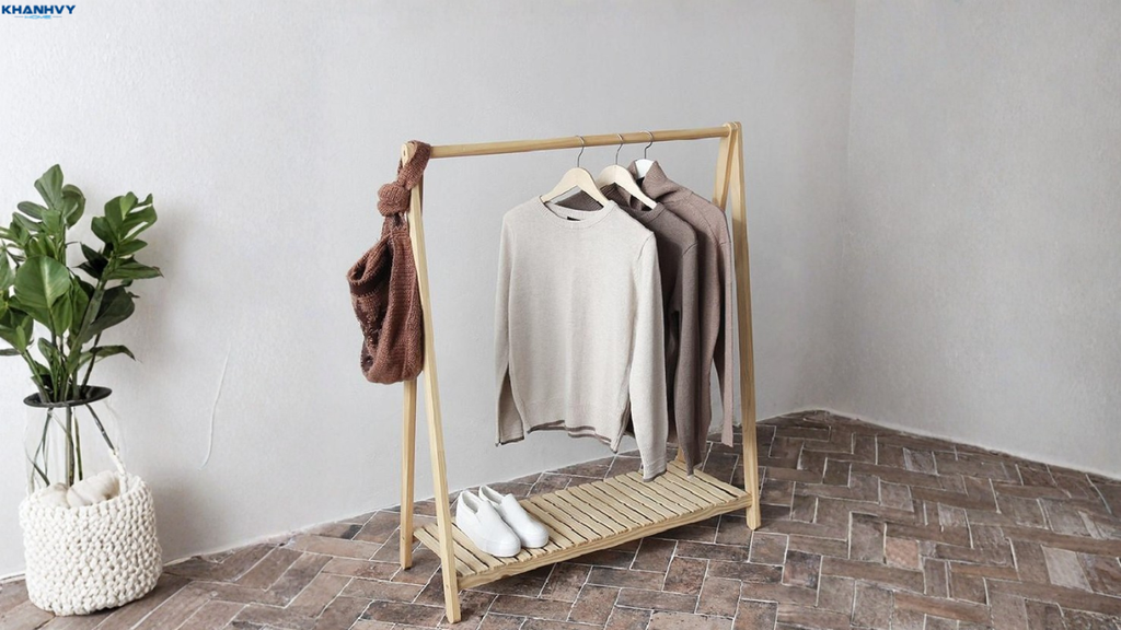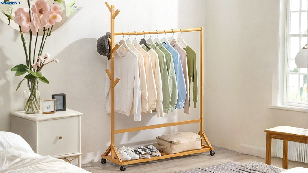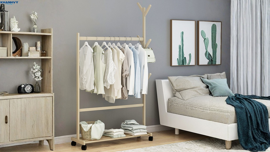 Kệ mắc quần áo di động làm bằng gỗ bền bỉ