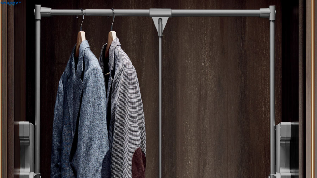 Giá treo nâng hạ là một trong những phụ kiện tủ quần áo thông minh giúp điều chỉnh chiều cao linh hoạt theo nhu cầu sử dụng. Người dùng có thể dễ dàng nâng lên hoặc hạ xuống suốt treo, tối ưu không gian chứa đồ và thuận tiện khi lấy quần áo. Thiết kế này không chỉ tiết kiệm diện tích, mà còn giúp bảo quản trang phục tránh nhăn, đặc biệt phù hợp với những tủ cao hoặc trần nhà lớn.