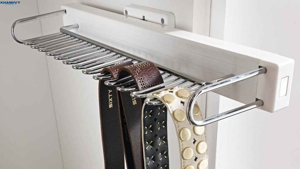 Giá treo cà vạt, thắt lưng là giải pháp lưu trữ nhỏ gọn và tiện lợi dành cho các phụ kiện như cà vạt, thắt lưng hoặc khăn quàng. Thiết kế chia ngăn khoa học giúp tránh rối, lộn xộn và dễ dàng lấy ra khi cần. Ngoài ra, phụ kiện này còn giúp bảo quản đồ dùng luôn đẹp, bền và sạch sẽ, góp phần tạo nên không gian tủ quần áo cao cấp và gọn gàng.