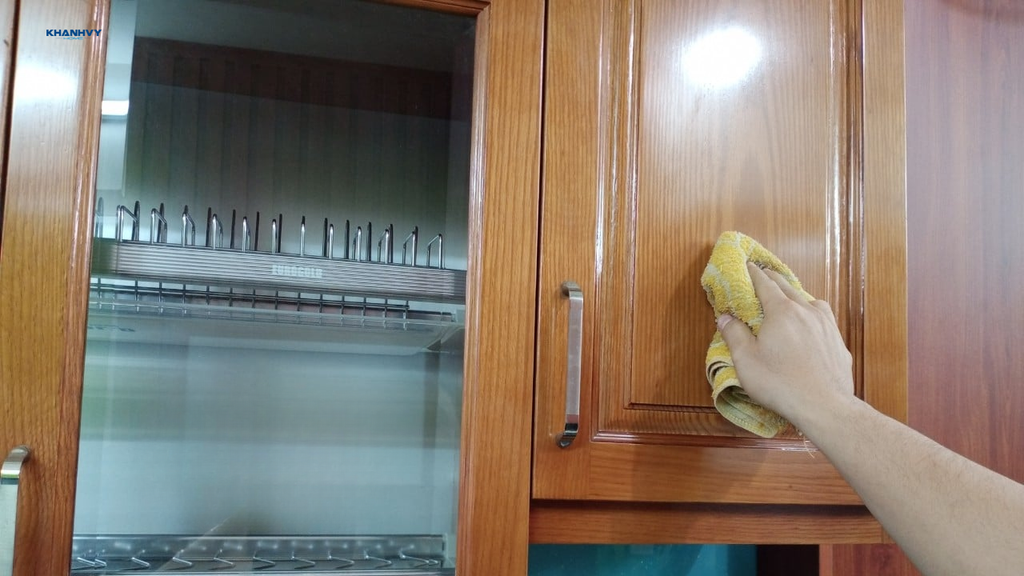Để lau tủ bếp hằng ngày, bạn nên dùng khăn mềm thấm nước ấm để lau đều bề mặt tủ, sau đó lau khô lại bằng khăn sạch nhằm tránh tình trạng đọng nước gây ẩm mốc hoặc bong tróc lớp phủ, đặc biệt với tủ gỗ công nghiệp hoặc tủ phủ laminate. Việc lau tủ bếp mỗi ngày không chỉ giúp tủ luôn sáng bóng mà còn giảm đáng kể công sức khi vệ sinh định kỳ, đồng thời duy trì vẻ đẹp thẩm mỹ và giữ vệ sinh cho không gian bếp.