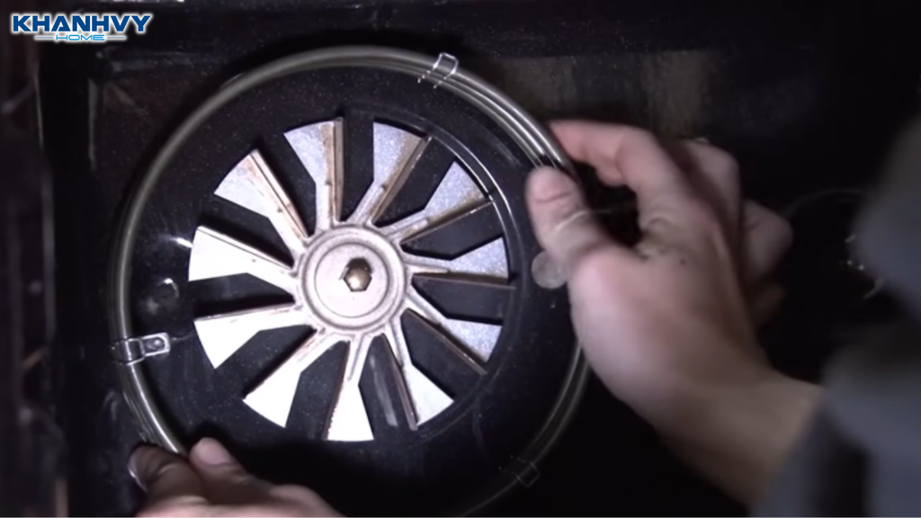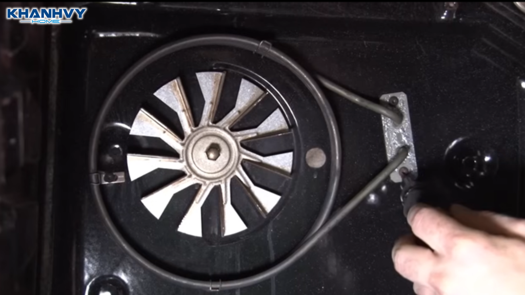 Sau khi thanh nhiệt mới đã vào đúng vị trí, tiến hành vặn lại toàn bộ ốc vít cố định thanh nhiệt. Tiếp theo, đặt lại tấm chắn phía sau khoang lò và cố định bằng các ốc vít đã tháo trước đó.