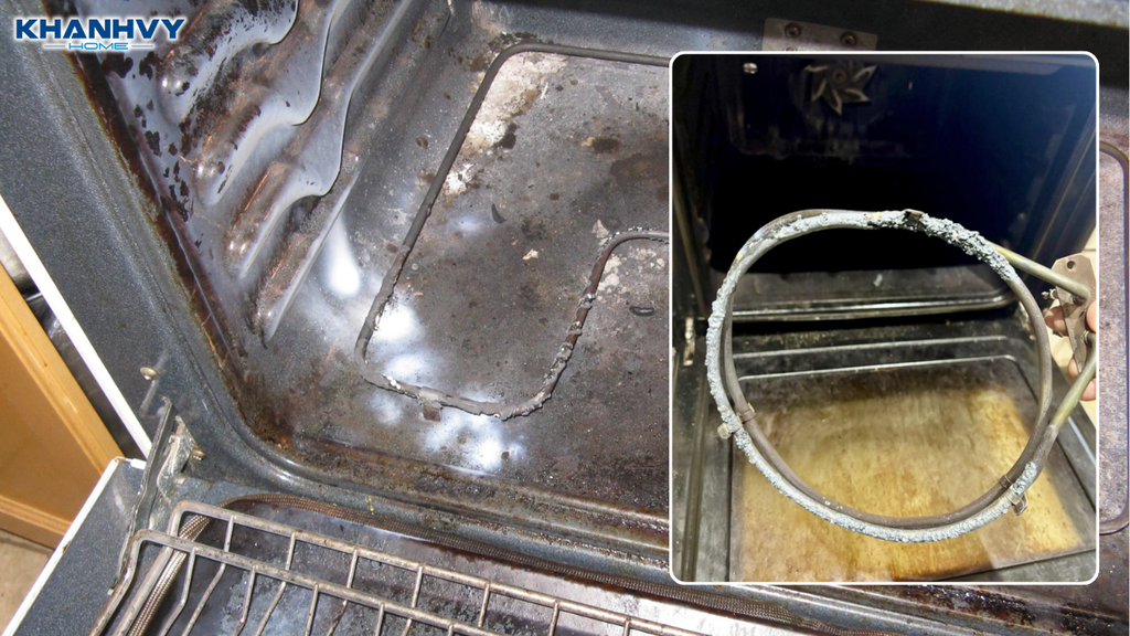 Dầu mỡ bám vào thanh nhiệt lò nướng bị cháy