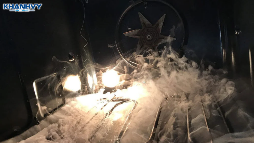 - Nếu cửa lò mở ra khi đang có cháy bên trong, luồng oxy đột ngột tràn vào có thể làm ngọn lửa bùng mạnh hơn.