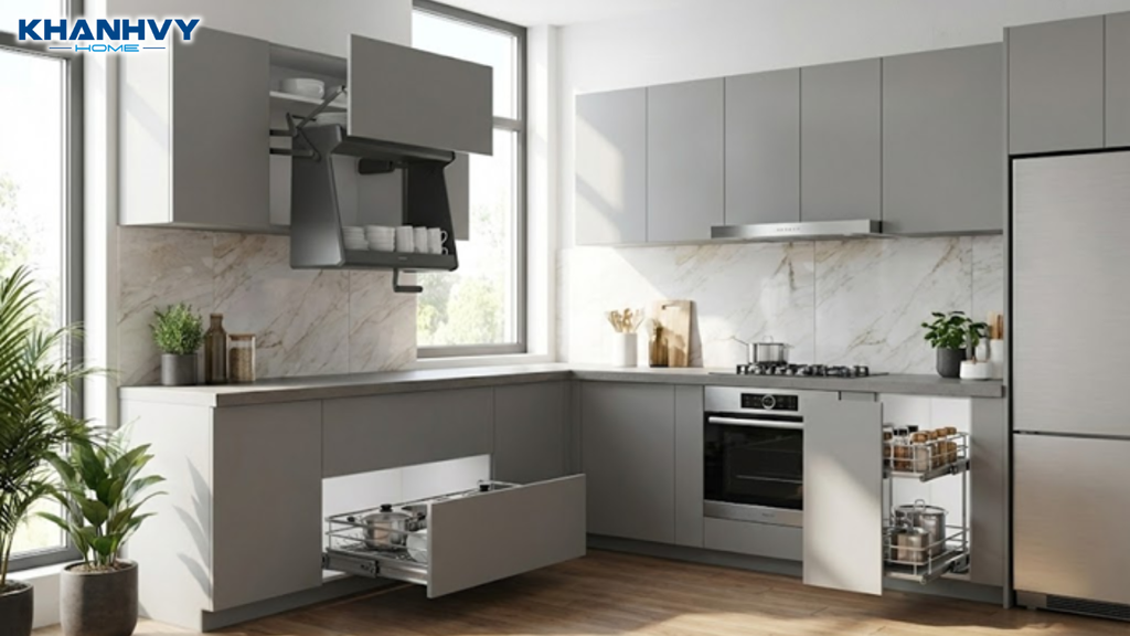 Phụ kiện tủ bếp thông minh giúp không gian bếp hiện đại và gọn gàng