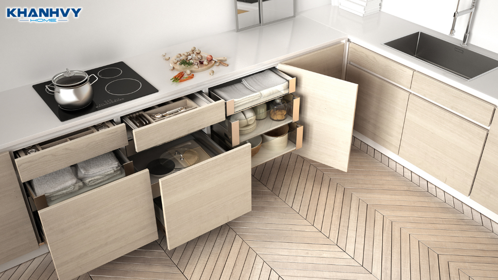 Không gian bếp hiện đại đòi hỏi sự gọn gàng, tiện lợi và dễ vệ sinh. Hệ thống phụ kiện lưu trữ tủ bếp đóng vai trò quan trọng trong việc tận dụng diện tích, giúp các vật dụng luôn có vị trí riêng, hạn chế bừa bộn và tăng tính thẩm mỹ tổng thể.