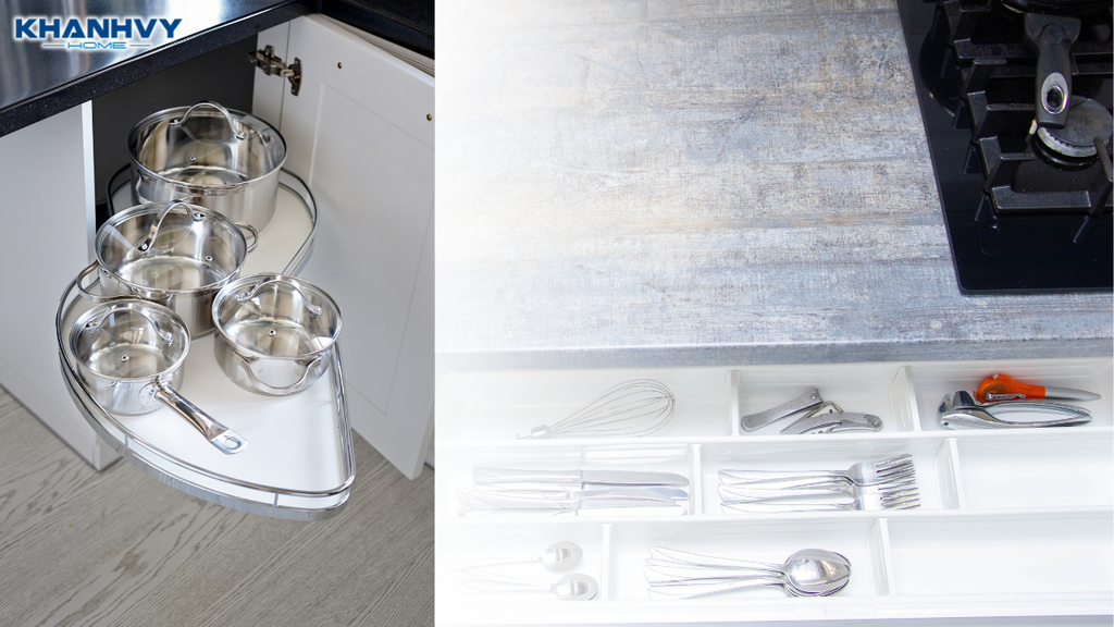 Cùng Khánh Vy Home tìm hiểu cách phối hợp phụ kiện thông minh để căn bếp luôn ngăn nắp, tiện nghi và tận dụng tối đa diện tích sử dụng.