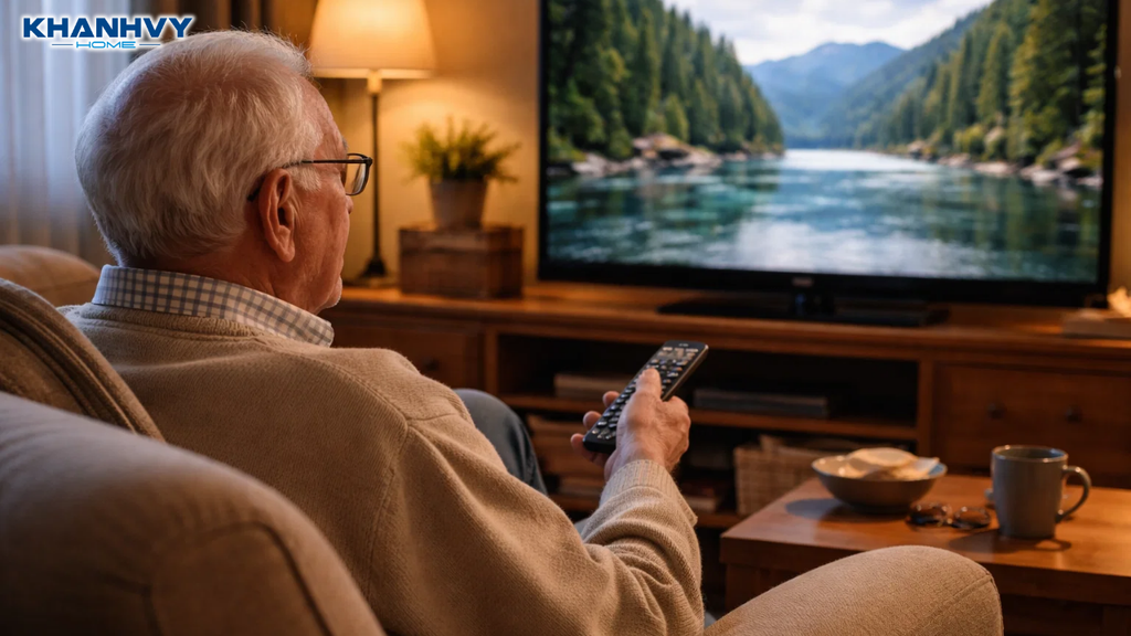 Thời gian sử dụng trong ngày của người lớn tuổi thường kéo dài nên họ cần một chiếc tivi mang lại cảm giác thoải mái khi xem lâu. Vì vậy, việc lựa chọn thiết bị phù hợp với thói quen sinh hoạt và khả năng sử dụng thực tế sẽ giúp họ dễ dàng thao tác, xem rõ, nghe rõ và không cần phụ thuộc vào người khác trong quá trình sử dụng lâu dài.