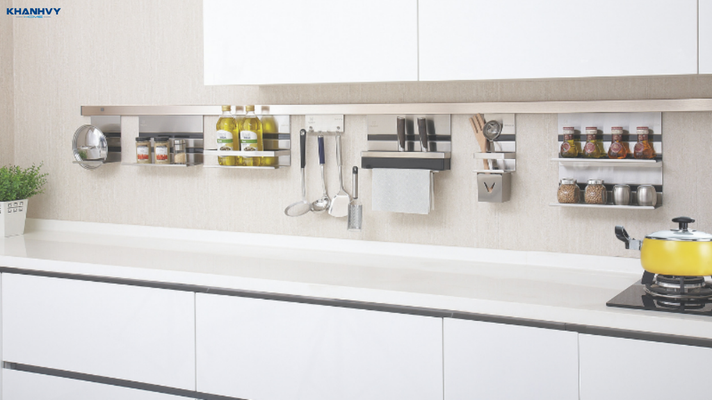 Kệ gia vị inox là phụ kiện giúp giữ các loại chai lọ, hũ gia vị luôn gọn gàng và dễ tìm mỗi khi nấu ăn.