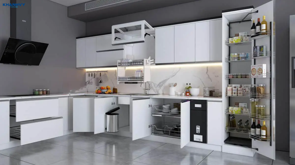 Phụ kiện tủ bếp inox đang trở thành lựa chọn hàng đầu trong các căn bếp hiện đại nhờ độ bền vượt trội, khả năng chống gỉ sét, dễ vệ sinh và tính thẩm mỹ cao. Với thiết kế đa dạng, inox không chỉ giúp tối ưu không gian lưu trữ mà còn mang đến sự tiện nghi, sang trọng và an toàn cho gia đình trong quá trình sử dụng. Hãy cùng Khánh Vy Home khám phá chi tiết những ưu điểm và phụ kiện inox không thể thiếu trong căn bếp của bạn.