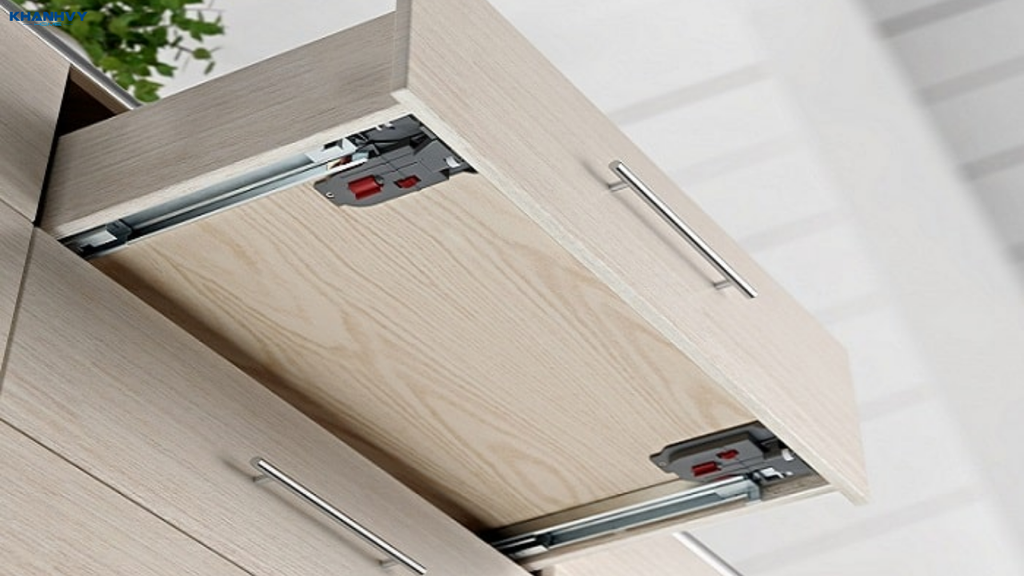 Ray kéo và bản lề giảm chấn là bộ phụ kiện quan trọng đảm bảo tủ bếp vận hành êm ái, bền bỉ.