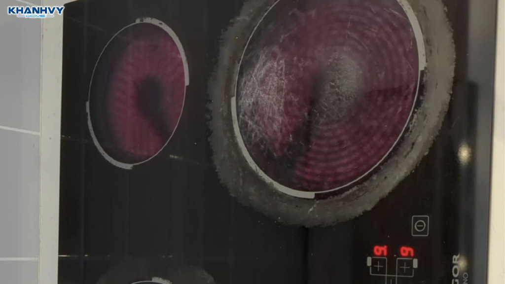 Súp , cháo tràn ra bếp khi xôi dẫn đến bị cháy bám cặn trên mặt kính