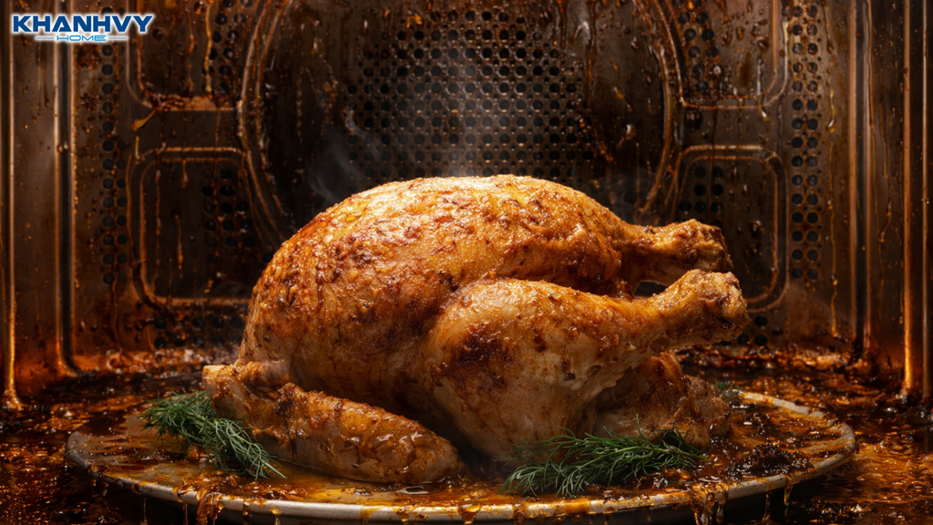 Lò nướng sau thời gian sử dụng dễ tích tụ dầu mỡ và cặn thực phẩm bên trong khoang lò, ảnh hưởng đến hiệu suất nướng và trải nghiệm nấu ăn hằng ngày.